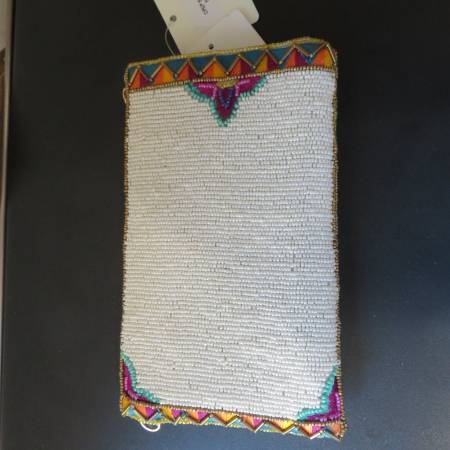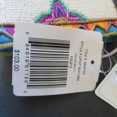 Mary Frances beaded "Fiesta" crossbody phone bag. Beautifully hand made with beads, Measures 5" wide x 8" long. Removeable cross body chain strap (measures 51 inches long end to end). Has a zipped compartment as well as a compartment at the end that fits a phone or the chain if not in use. Brand new with tags. If interested, please call/text only