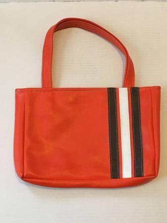 Orange vinyl tote bag Lightly used H- 8 1/4" W- 12"
