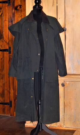 Original Irish long coat in green waxed cotton. Made in IRELAND by "jack murphy" Evergreen.