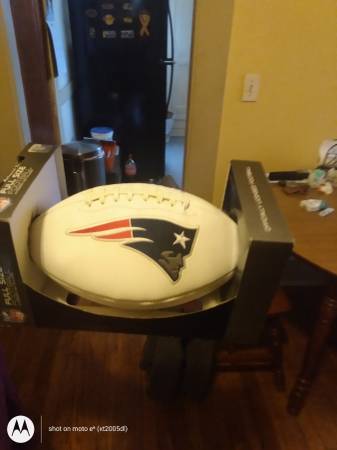 New England Patriot NFL football 5 super bowl wins with autograph pen