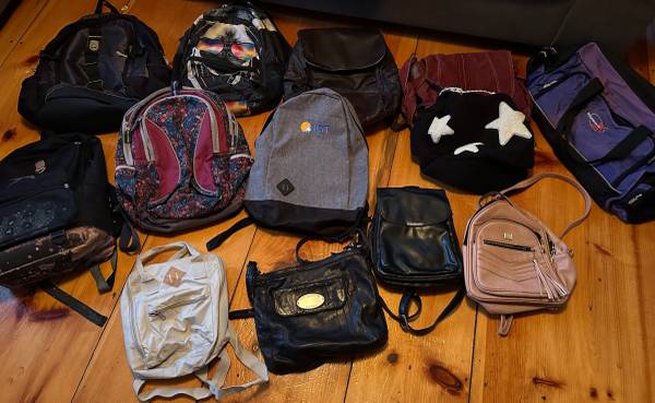 Six large backpacks Three small backpacks Three cross body purses One duffle bag. No holes from a smoke free home 50 takes All