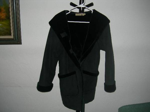 Black Suede Winter Coat with Hood Women Ladies This looks like a nice coat with stylish big pockets, fur cuffs and lining, and buttons. Label - St. John's Bay Size Small All reasonable offers will...