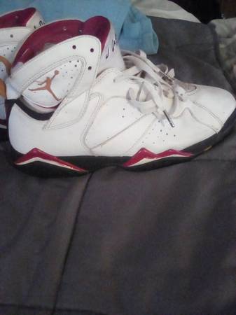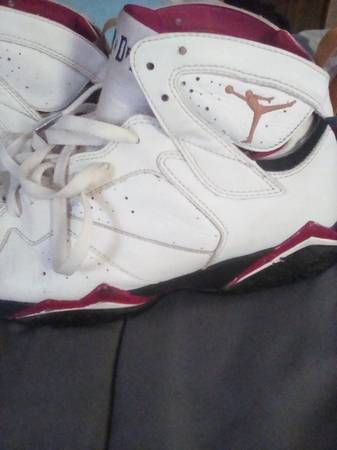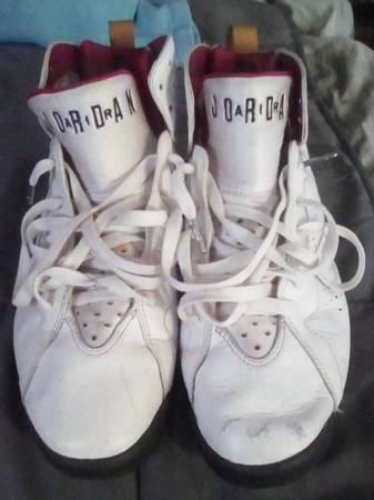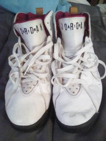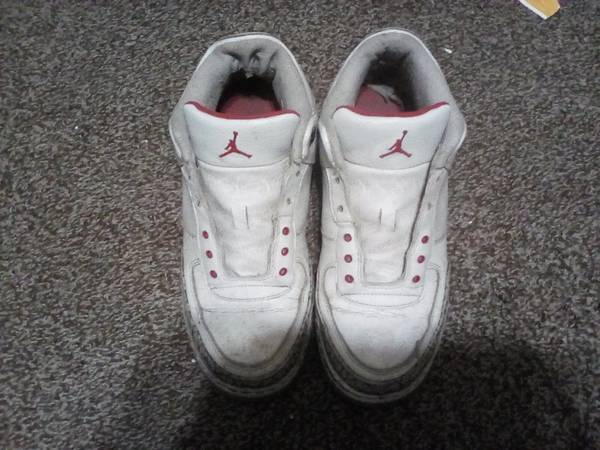 2011 Air Jordan "Cardinal" size 9.5. Left shoe has damage on the tip of the shoe. The shoes have the jump man laces.