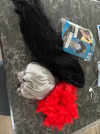 Wigs - 4 - Long Black hair, Red clown, Grey old woman, Black Geisha