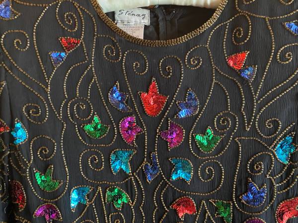 TOP: Stenay black beaded/sequin silk crinkle georgette, short-sleeves