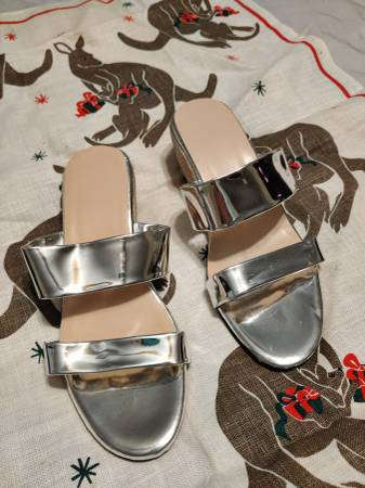 Silver and rope wedge size 6.5 straps go wide. Nice height but never got to wear them. _10.00