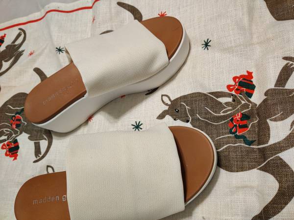Madden girl off white slide on wedge. I tried to walk in them after bunion surgery ...it did not go well ..lol I can no longer wear heels of any kind. The Madden girl size 6.5 _$10.00