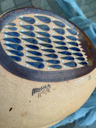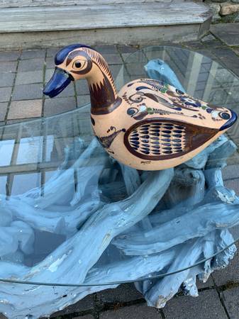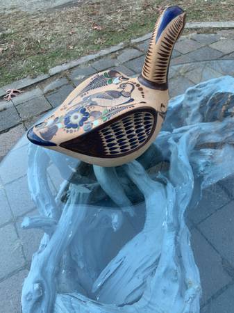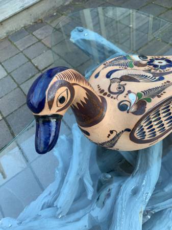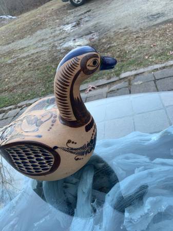 Spectacular art pottery duck figure. I haven't identified the signature yet but it is definitely some sort of Ken Edwards / Tonala piece. Piece is marked as shown. Piece is in excellent condition. There are a few small scuffs and nicks but overall excellent.
