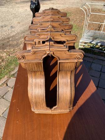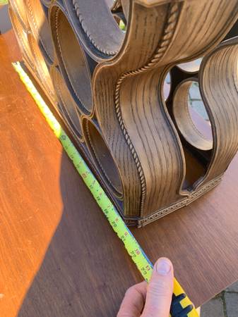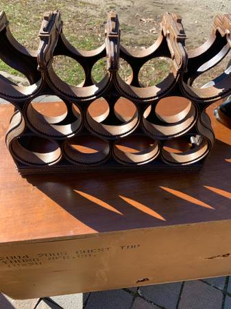 Vintage faux wood molded plastic wine rack as shown. Has a 70's vacation home look. Piece is in very good condition. There are a few scuffs and scratches to the plastic. Piece is dusty from storage but overall very good.
