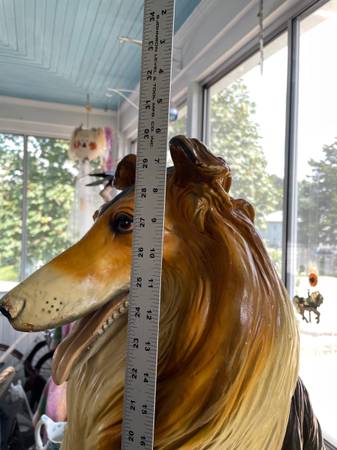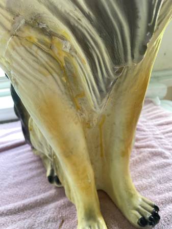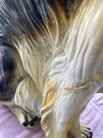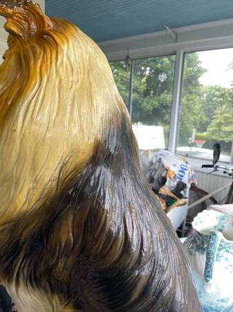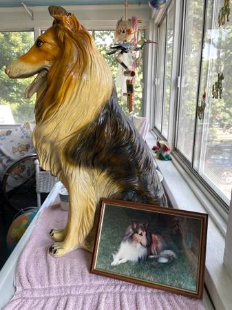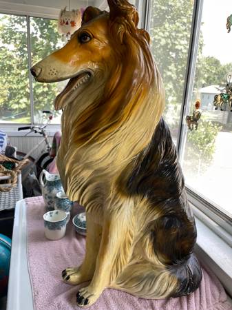 Or, make a Reasonable offer!! Life size lifelike Collie dog statue sculpture figure made in Italy in the 1960’s. These dogs were expensive when they first hit the American market and they are very expensive now if they are in perfect condition! They can go for up to $500. My collie is not perfect. You can see in the pictures that there was damage done to its front legs. It must’ve been dropped or somebody banged into it with something big. So there is evidence of a lot of glue. But this dog is still beautiful and if you have it sitting in your hallway at the main door to your house, people will look twice at it to see if it is real or not. It really is a lovely figurine or statue! Just look at his or her beautiful face!! It has been in my home for quite some time now, but my house is very cluttered and this is just another item taking up space, so I am really motivated to sell it. If you are a collie lover or just a dog lover in general, I would like to put this Awesome piece in your home! Please feel free to email through Craigslist and we can talk! Please look at all of my pictures. It is for local pick up only in Coventry, Rhode Island and cash only. Thank you!