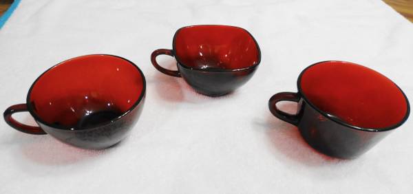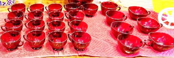 Vintage Depression Anchor Hocking tea/coffee/punch cups - Regal Ruby Red 17 small round 2-1/4 x 3-5/8 4 larger round 2-1/2 x 3-1/2 3 square 2-1/4 x 3-1/2