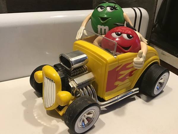M&M collectable rebel without a clue yellow hotrod candy dispenser $10.00