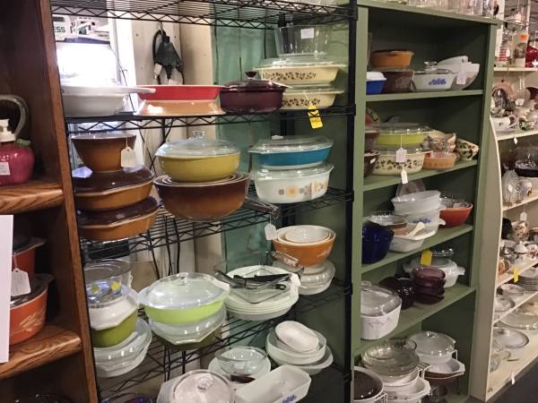 Pyrex, Corningware, Visions, Large selection of assorted pieces. Antiques Alley Antique Center, 711 Putnam Pike (Rt. 44) Smithfield R.I. 02828 Open Wed. - Sat. 10 - 5, Sun. 11 - 5, Closed Mondays...