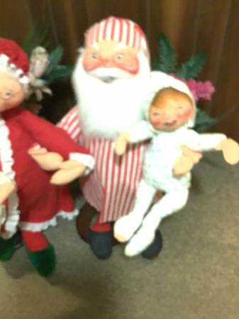 Mr and mrs santa in their night shirts with two children 85.00 for Santa and one child. And 85.00 for mrs Santa with one child buy separate. Buy all items 159.00 Pick up only