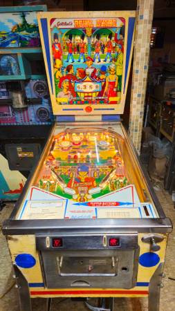 The game plays fast and functions 100%, has been shopped, including rebuild of pop bumpers, cleaned and waxed, new rubbers and burnt-out bulbs replaced. It is set on free play for in the home playing. The back door was replaced with a wooden door. The backglass has some flaking, the cabinet has some scratches, and the playfield is in great shape with no paint wear. It is overall in nice shape with some new parts replaced as needed. It has been in temperature-controlled storage for the past 25 years. If the ad is up it is available. Please let me know if you have any questions. Pickup in Pawtucket R.I. or shipping if arranged at buyer’s expense and cost. Asking $650. or trade for an add a ball.