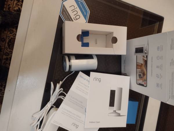 Ring camera indoor--Ring 1080p Indoor Cam (1st Gen) Security Camera - White and Echo Dot pick up only