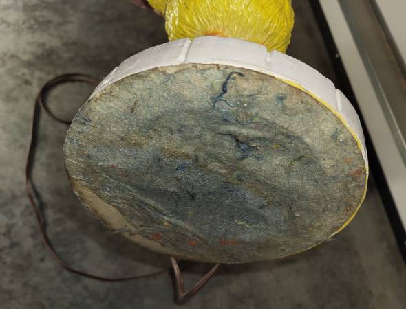 He does have some normal wear for his age, bottom material for the lamp shows wear, small crack at one of his ankles.