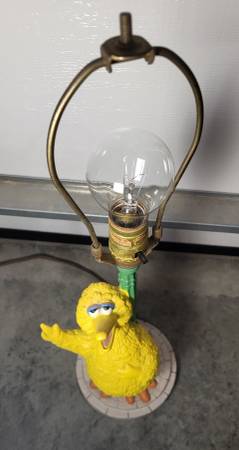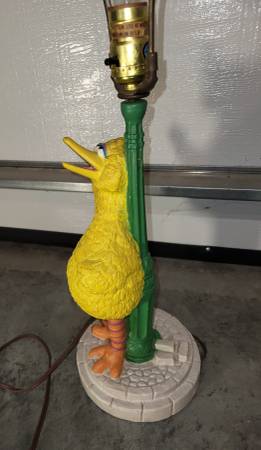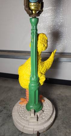 This is a vintage Sesame Street lamp from the 1970's featuring Big Bird. No longer has the lamp shade, lamp is working, electrical cord is in good shape.