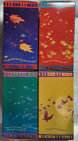 The Vintage 90s Disney Pocahontas Collector Series Cups / Glasses are a complete, nostalgic set of 4 collectible items from Burger King featuring characters and themes from the Disney movie "Pocahontas."