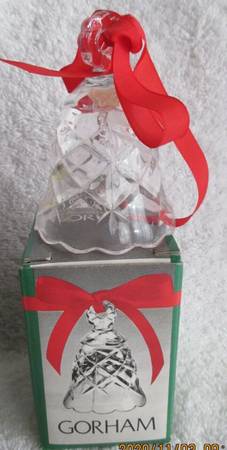 Gorham Crystal Holiday Bell Full Lead Crystal With red ribbon Size: 2 3/4" New in box Perfect for the Gorham Crystal collector