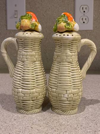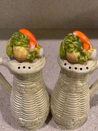 Vintage Lefton Vegetables On Basket Salt and Pepper Shakers 7" Tall Porcelain