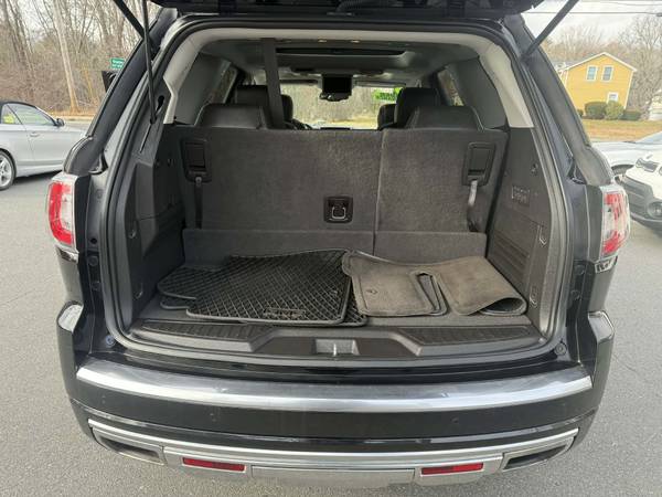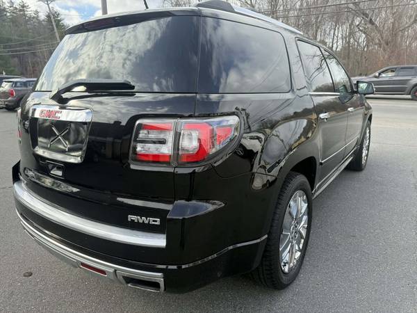 Dracut's Car Connection presents this CLEAN and LIKE NEW ONE OWNER 2016 GMC Acadia DENALI AWD w/ONLY 74K EASY ONE OWNER MILES and You can tell! Absolutely BEAUTIFUL in a Black Metallic Exterior on a CLEAN Black HEATED and COOLED LEATHER interior! EVERY SINGLE OPTION AVAILABLE including NAVIGATION, BACKUP CAMERA, REAR LCDTV/DVD Entertainment to keep the kids SMILING, 3RD ROW for the EXTENEDED or BIGGER FAMILIES, Steering Wheel Controls, Climate Controls, PW, PDL, P. Mirrors, P. Seats, A/C, CC, Tow Package, USB and Aux inputs, Premium Wheels w/BRAND NEW TIRES, NEW BRAKES, FRESH OIL CHANGE and much much more! A VERY CLEAN and WELL MAINTAINED Truck that is READY TO GO! Visit us online for more details and pics at www.dracutscarconnection.com CALL US at 978-957-0717 or CALL/TEXT 978-569-0324 TODAY! Very Easy Financing Available For EVERYONE!