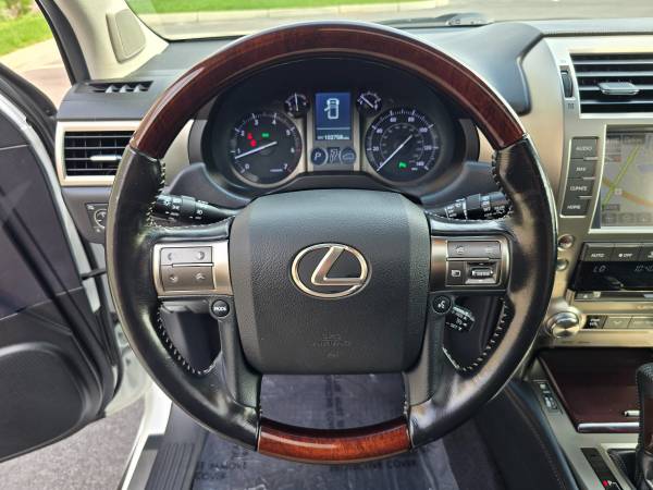 Absolutely mint 2017 Lexus GX460 with 102k miles! 4.6L V8 - Automatic - 4WD. Loaded with features including leather seats; heated and cooled power seats; second row Captain's seats; heated second row seats; memory seats; sunroof; navigation; Bluetooth; AUX/USB; push-button start; automatic headlights; fog lights; power folding mirrors; and 18-inch alloy wheels. Safety features include backup camera; blind spot monitors; and parking sensors. Third row seating for 6 passengers! *ONE-OWNER*