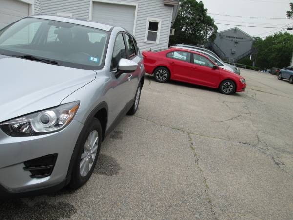 This 2016 Mazda CX-5 Sport AWD 4dr SUV 2.5L Automatic 97K Silver vehicle that runs and drives great. It is loaded with options and is in great condition. It comes with a NH state inspection an temp plate, so you can just drive it home. TRADES WELCOME..... WE DO NOT CHARGE ANY TITLE OR DOCUMENT FEES, saving our customers the extra fees to buy a car or truck. We're open Monday through Saturday 9am to 5pm an after 5pm by appointment and Sunday by appointment. Our address is 11 storer ct Derry NH 03038. You can get more info and see more pics at my website www.motorcarseast.net or call Joe (877)425-0864