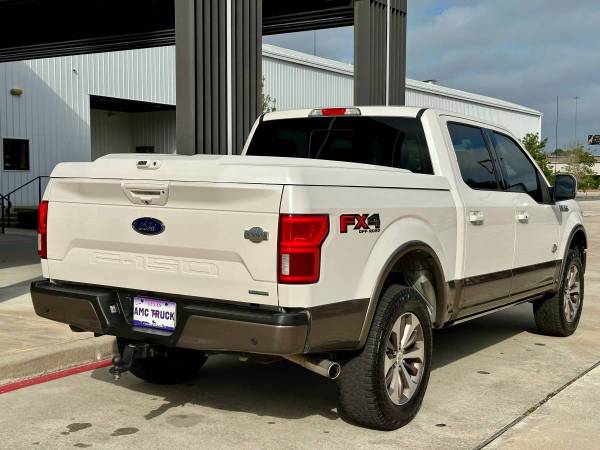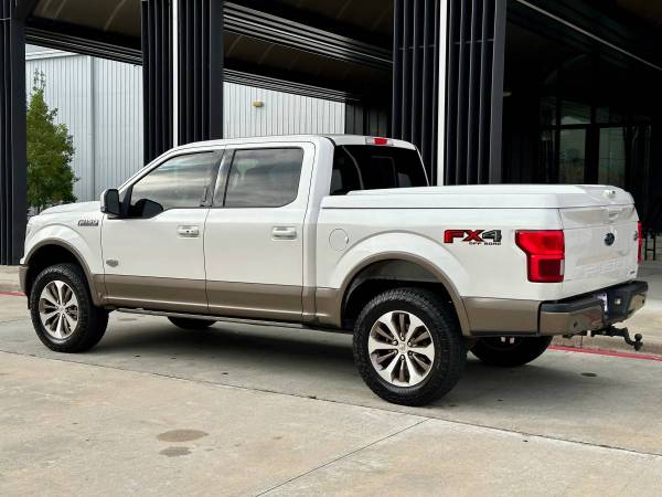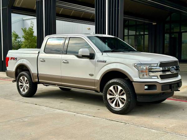For sale is 2 Owner 0 accident CarFax 2018 Ford F-150 SuperCrew King Ranch 4WD FX4 Package with a 5.5FT bed, 3.5 Liter V6 EcoBoost Engine and 10 Speed Automatic Transmission. Truck has 139,989 well maintained miles and fully serviced miles. This truck is loaded! Truck has absolutely no oil leaks, No rust, No mechanical issues whatsoever. No Misfires, Transmission does not have kicks or delays and shifts just the way it should. Truck has a fresh oil change. Fresh transmission flush, Truck suspension is tight with no wobbles or play in the steering. Options on this truck are endless: Power Locks, Power Windows, Cruise Control, Power Adjusting Side View Mirrors, Power Folding Side View Mirrors, LED lighting in Side view Mirrors, Automatic Headlights, Fog Lights, power folding Running Boards, Power Sliding Rear Glass, Power Adjusting Foot Pedals, Power telescoping steering wheel, heated steering wheel, massaging front seats, 360° surround Camera, Towing Package, Leather Interior, Center Shift Console, Push Button Start, Keyless entry, Remote Start, Dual Climate Control, LED Cargo Lighting, Rear Park aid, 110V OEM Inverter, heated and cooled seats, Power driver and power passenger seats, SYNC MultiMedia AM/FM/CD/AUX/USB/CarPlay/ Bluetooth, Navigation, button tailgate release, tailgate with step and handle, husky laser fitted floor mats, tow package, bed cover, All books and manuals, 0 accident 1 Owner Carfax, clean and clear title, one key.