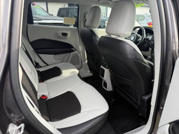 Introducing the 2018 Jeep Compass Altitude - a compact SUV that combines rugged capability with sleek style. This versatile vehicle is perfect for both city driving and off-roading adventures. With its spacious interior, advanced technology, and impressive performance, the Compass Altitude is the ultimate choice for those seeking a balance of practicality and luxury. Step inside and experience the comfort and convenience of the Compass Altitude's spacious cabin. Its premium cloth seats provide ample support for long drives, while its 60/40 split-folding rear seats allow for customizable cargo space. The Altitude also comes equipped with a 7-inch touchscreen display, Bluetooth connectivity, and a six-speaker sound system for a seamless and enjoyable driving experience. But don't let its refined interior fool you - the Compass Altitude is a true Jeep at heart. Its 2.4L MultiAir engine delivers an impressive 180 horsepower, while the available 4WD system provides excellent traction on any terrain. Plus, with a towing capacity of up to 2,000 pounds, the Altitude is ready to take on any adventure you have in mind. On the outside, the Compass Altitude exudes confidence and style. Its sleek black exterior, accented by 18-inch gloss black aluminum wheels, gives this SUV a bold and commanding presence on the road. The Altitude also comes equipped with features such as a black roof, gloss black grille, and deep-tinted sunscreen glass, adding to its rugged and sophisticated look. But that's not all - the 2018 Jeep Compass Altitude also comes with a suite of advanced safety features, including blind spot monitoring, rear cross path detection, and a rearview camera, to keep you and your passengers safe on the road. Don't miss out on the opportunity to own the 2018 Jeep Compass Altitude - a perfect combination of style, performance, and capability. Visit our dealership today and take this exceptional SUV for a test drive. With its extra features and spacious design, the Compass Altitude is sure to exceed all your expectations.