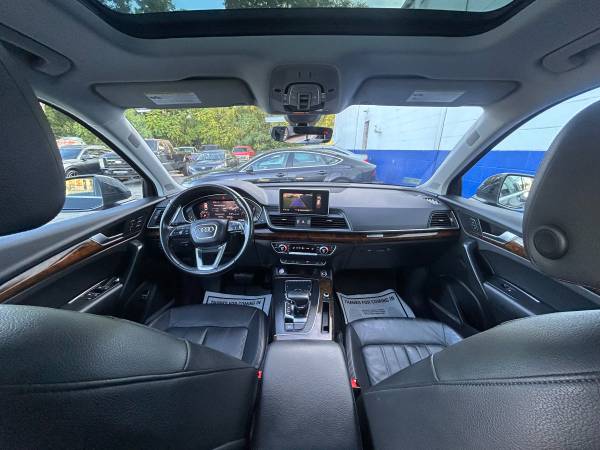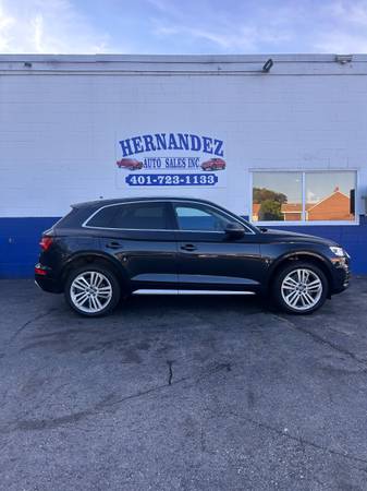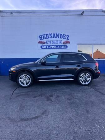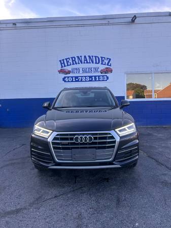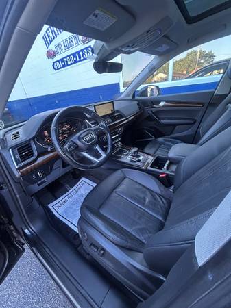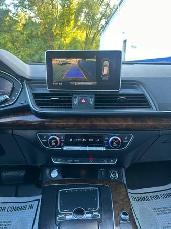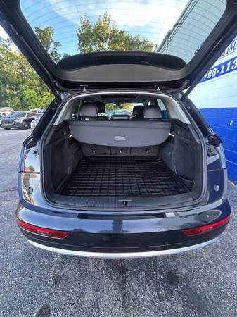 2018 Audi Q5 quattro Premium Plus. This is an amazing luxury car with so many features with the premium plus package, with a 4 cylinder turbocharged engine and All Wheel Drive as well. This car has a nice dark blue paint exterior and a black leather interior to match, installed with heated seats in the front and the back too. This car has great features, including power locks, power windows, power mirrors, power seats, cruise control, navigation, a panoramic sunroof, and even has a touch pad to control everything on the digital dash. This car also has many safety features, including a back-up camera, park assist, blind spot monitor, and even drive-select to control your driving experience. The car also has a radio, CD player, and Bluetooth for all your music needs. We will deliver with a 2-year Rhode Island inspection sticker and a 30-day or 1000-mile warranty on the engine and transmission. Come see and drive; you will love it!