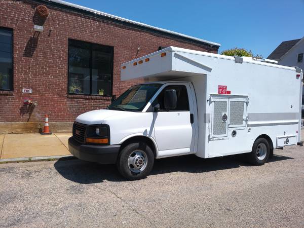 ****FINANCING AVAILABLE**** ONE OWNER, FLEET MAINTAINED ,2009 GMC SAVANA G 3500, FIBER-OPTIC SPLICING LAB /TRUCK/VAN , WITH A/C, DUEL REAR WHEELS,WITH 128,000K MILES 6.0 GAS , AUTOMATIC TRANSMISSION, CUTAWAY 12' ALUMINUM AIRCONDITIONED AND HEATED WORK AREA , CARBON MONOXIDE DETECTOR , EQUIPPED WITH 10 KW 4 CYL GENERATOR , 110/ , STEEL SHELVES AND STORAGE BINS , AND A 7' WORKING COUNTER TOP. WITH 3 OVER HEAD FLORESCENT LIGHTS . BOX AND VAN ARE IN EXCELLENT CONDITION .CALL FOR MORE INFO. BOX DIMENSIONS ARE 14' L X 8' W , INTERIOR HEAD ROOM 6' . DOUBLE OPEN OUT REAR DOORS 40" X 68" VEHICLE OVER ALL HEIGHT IS 10' 6", OVERALL VEHICLE LENGTH 22 ' 7 " . THIS IS ONE OWNER VEHICLE . NO TEXTS OR EMAILS. CALLS ONLY (401) 486-8503 OR (401) 351 002 fiber optic , fiber splicing, fiber splicing trailer,