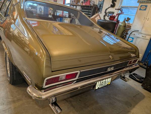 turn key show or go 1972 Chevrolet Nova SS badged clone in original code 57 Golden Brown on a rust free original straight body. paint is an 8 out of 10 with no bubbles or rust. adult owned and garaged last 30yrs. original patch and rust free floors, frame, and trunk. motor is a low mile NOM Chevy 350 crate ZZ3 with 380hp. transmission is a fresh HD 700r4 4 spd auto. rear is a 373 posi. car is clean and quick. great on the highway or cruising around town. beautiful bucket seat interior with working heat, stereo, and seat belts. all in all a straight classic priced to sell at $25,000. Trades considered. Send pictures and details of trades. also available in a pkg deal or seperate is an all match # 1967 Buick GS400 from down south with lots of docs. enclosed trailer delivery available. if want a response send me your contact phone number to discuss like gentleman. Camaro Chevelle trans Am hotrod