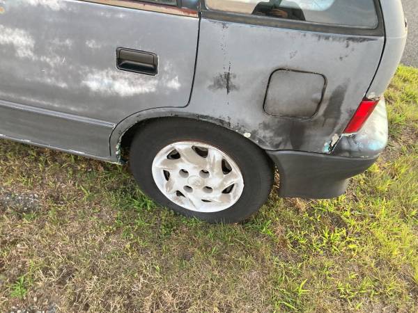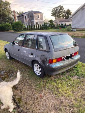 Surprisingly spacious. The 4-door, 5-speed is a coveted Metro model. Running nicely when parked like 6 years ago, but it needed wheel bearings, front right side I think. It’s a California car, I had it shipped to RI in 2015 or 16. Gets 40 mpg around town, 48 mpg on long highway trips. The transmission was replaced in 2015 by the Metro tranny guru in Cali. The odometer only goes to 100k and this one rolled over, the mileage is 226k.