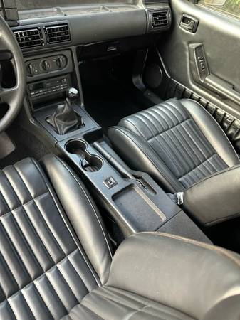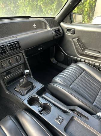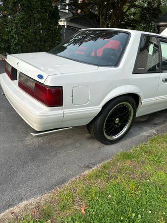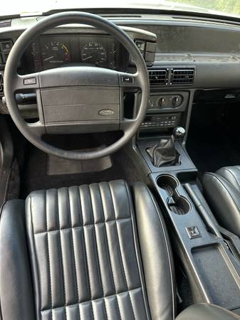 1993 Ford Mustang notchback. 5.0. Recently refreshed/rebuilt engine with B cam White with black interior. Original 5.0 car. Solid car. In very good condition for the year. I have done a ton of work to this car. Interior is immaculate. New upholstery, new rug, headliner, visors, door panels, seat belts.. Trunk mint. New carpet and insulation. Recently rebuilt G Force T5 transmission. Brand new Ford Racing aluminum driveshaft. Rear end has been completely rebuilt, new 31 spline differential, new 31 spline moser axles, Ford Racing stud girdle.