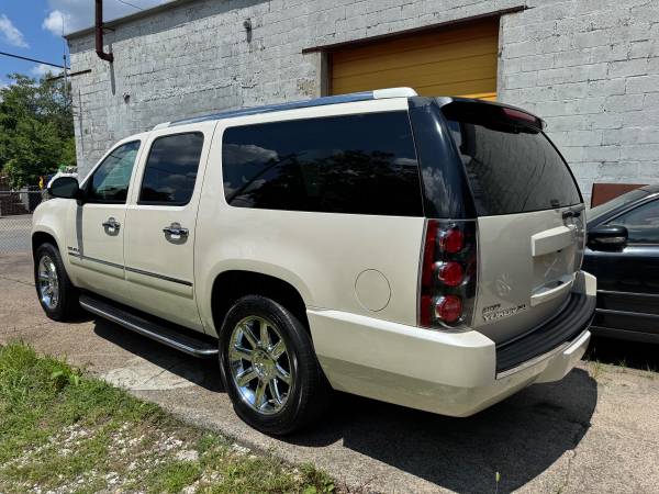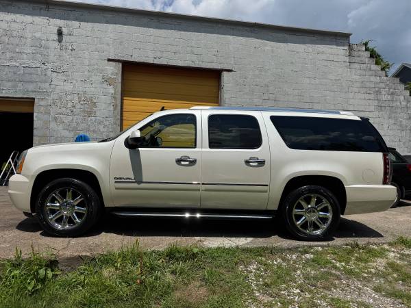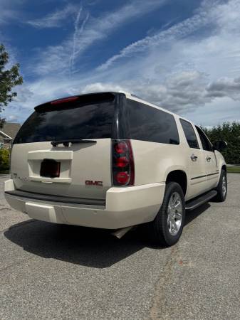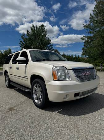 2011 GMC Yukon Denali XL 1500 6.2L AWD V8 Automatic. only 109k Original Miles! White Diamond Tricoat with a light cashmere interior. Clean Title in hand. Two owner vehicle all original exquisite condition. No Rust. non-smoker, interior is in great shape no rips tears or wear, smells new still. 2 keys with fobs. Extensive CarFax Service History. Seating for seven top-of-the-line Denali model features wood grain wheel, heated air condition seats, heated steering wheel, sunroof, rear TV/DVD Entertainment system, Bose Premium Stereo system, collision avoidance system, Blindspot monitoring, backup sensors and back up camera, OnStar, Navigation, Bluetooth, Autoride Suspension, 20in Chrome Wheels with Brand New Tires, Garage kept and pampered.