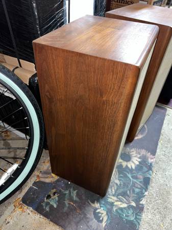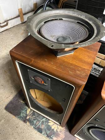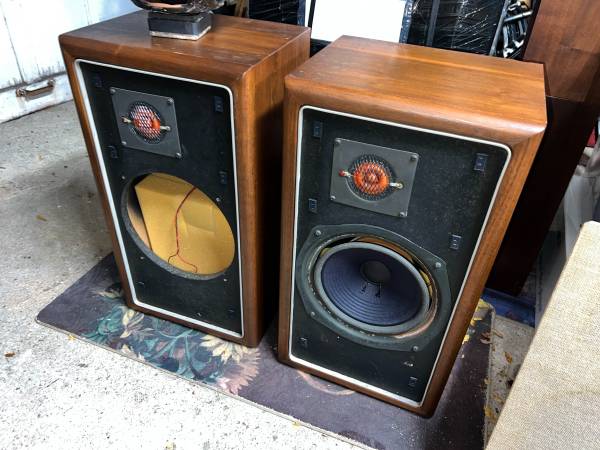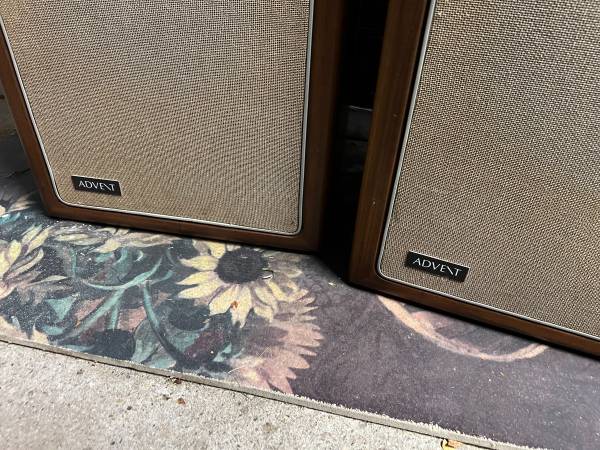 Cool old pair of The Advent Loudspeaker in pretty good cosmetic condition. Woofers need refoam. One woofer is worth fixing, one may or may not be. Tweeters work. Definitely worth the effort to fix...