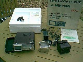 Nippon FS-714 is 40 years old, has AM/FM/SW bands and three TV bands but the TV portion recently stopped working. I paid quite a lot for it in 1984 and cherished it like the prize it is. It still has its original box, manual, 110/220VAC power supply, 12VDC auto supply, carry strap, magnifying lens and fitted leatherette cases. These units fetch substantial sums on eBay in any condition, this one is aesthetically indistinguishable from new. It may be a straightforward repair for an electronics buff, there probably aren't any ICs inside.