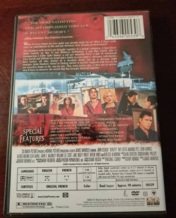 IDENTITY, directed by James Mangold, is a thriller set at an isolated motel in rural Nevada during an unrelenting rainstorm. With all roads washed out and all forms of communication dead, a group of people become stranded at the motel along with the shifty manager (John Hawkes). Among the stranded are Ed (John Cusack), a former cop turned limo driver; Caroline (Rebecca De Mornay), a self-absorbed actress; Paris (Amanda Peet), a prostitute attempting to escape her profession; Rhodes (Ray Liotta), a cop transporting a prisoner (Jake Busey); Lou (William Lee Scott) and Ginny (Clea DuVall), bickering newlyweds; and George (John McGinley) and Alice (Leila Kenzle), a married couple travelling with their young son. Soon the waterlogged lodgers start dying in mysterious--and brutal--ways, and the increasingly dwindling number of survivors must discover the killer to prevent their own demises. Riveting from the opening sequence, Mangold's suspenseful murder mystery wastes no time in turning on the tension. Realizing that truly scary cinema comes from the unknown and the unexpected, Mangold and screenwriter Michael Cooney keep the audience--and the film's characters--in the dark and continually create situations that go from bad to worse for the luckless travelers. Cusack anchors the film as the resigned but noble former policeman, while Peet reveals a depth previously unseen in her other movies. Actors such as Liotta, McGinley, Hawkes, and De Mornay round out the fine ensemble cast. As with many thrillers, IDENTITY has a big twist, but because of the filmmakers' excellent slight of hand, it's unlikely viewers will predict the bizarre outcome.