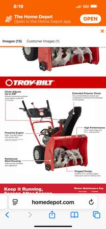 Delivers reliable power through a Troy-Bilt 208 cc engine with push-button electric start, eliminating the need to pull-start a cold engine
