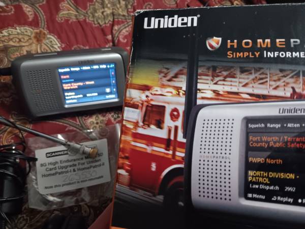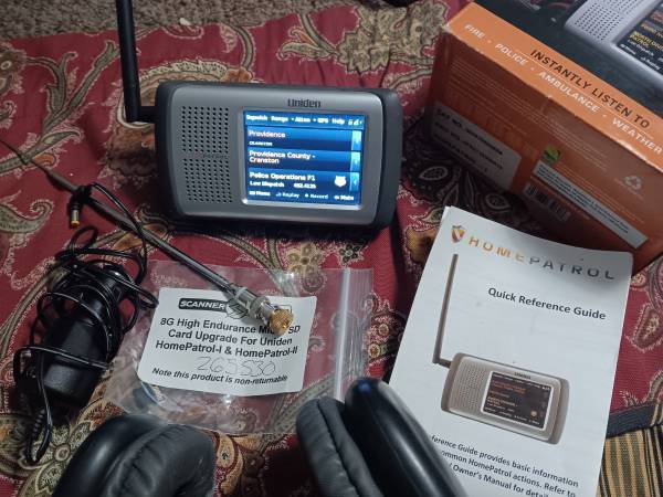 Uniden Home Patrol One police radio. Nice condition, original box, 2 antennas, booklet, power adapter, computer cord for updates, pair of headphones, and car adapter. Nice unit to listen to police / fire / etc, works well.