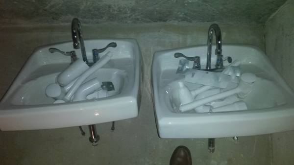ADA approved commercial wall mounted sinks with all hardware faucets included like new. 21'X20" measurement. PRICE IS FOR EACH SINK!