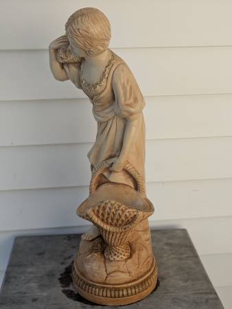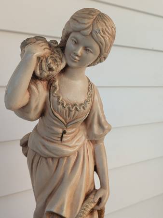 Vintage Chalkware Marwal figures. The lady figurine is about 20" tall and the Fisherman is 18". Lady figurine is in excellent condition and the fisherman is good but has some flaking on his side....