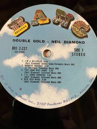 Take a step back in time with Neil Diamond's " Double Gold" Album. This is a 2 Album set. Fabulous Neil Diamond singing " Solitary Man" and many many more of our Neil Diamond Favorites. See pictures for songs. Album in great condition.