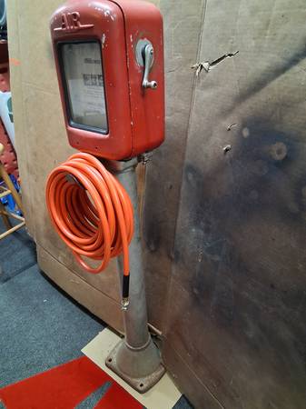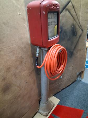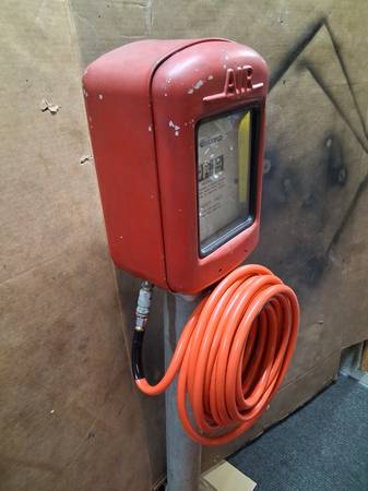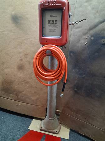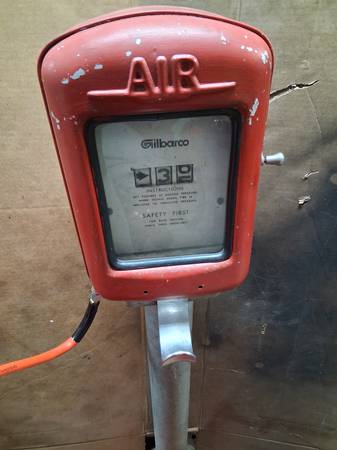 For sale. a complete vintage Gilbarco brand gas station air meter. This one is complete with original pedestal mount stand.