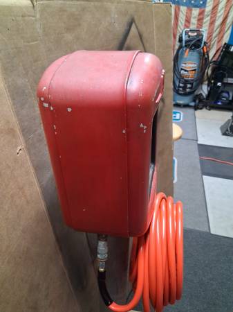 In very nice shape. Side handle works, hose hook works as it should, the glass and face are clear and easy to read. Plumbing is present inside the pedestal, and comes with brand new air hose and air chuck.