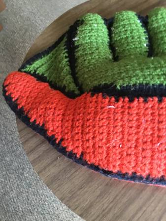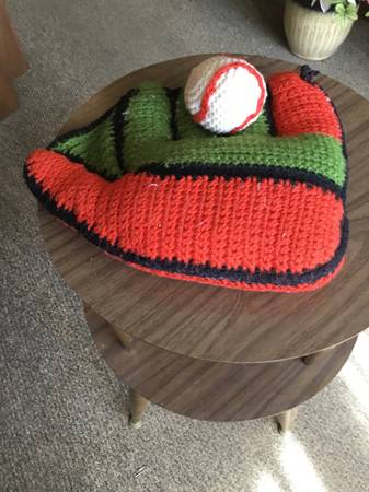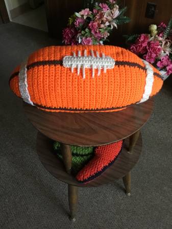 Large Orange knitted football. 25.00. Also have a knitted baseball glove and ball 25.00. Good Xmas presents. Buy both for 45.00. Pick up only
