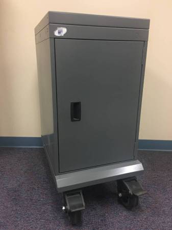 MOBILE MACHINE STAND w/ HEAVY DUTY TOP 18” wide x 21” deep x 37.5” overall high Single Swing Door & Adjustable Middle Shelf Mobile Cabinet Base with 6” Casters for easy rolling. Heavy Duty...
