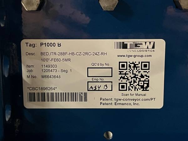 - 17 Powered Straight Sections @ 10' long with 4 Zones @ 24" long.
