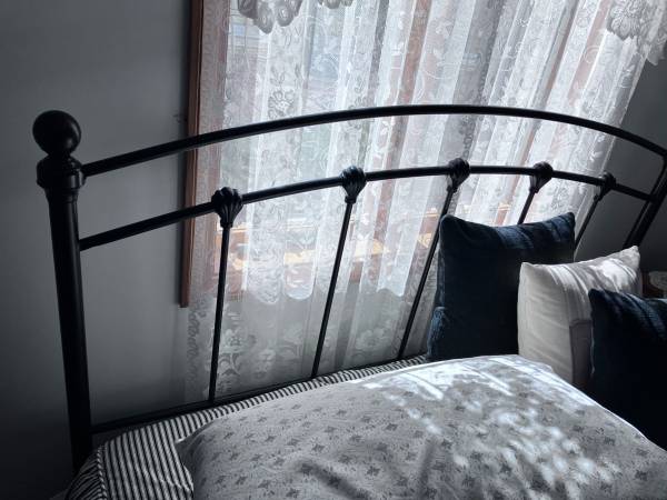 Campbelltown metal slat headboard ByAlcott Hill Overall - 52” h x 61.25” w x 2.75” d Mount type- wall mounted , bed frame mounted Color - ash black finish See wayfair online
